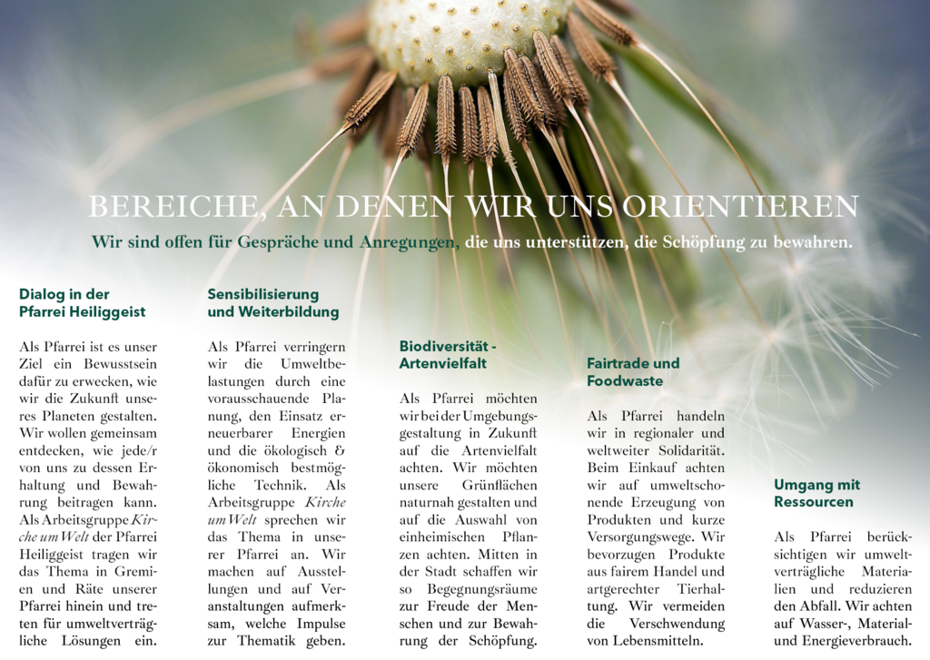 Die Pfarrei setzt sich für den Erhalt der Schöpfung ein – aus Dankbarkeit und Verantwortung für kommende Generationen. Die Arbeitsgruppe Kirche umWelt hat dazu einen Leitfaden erarbeitet.